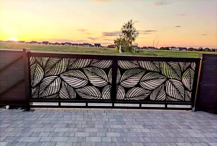 BRAMA PRZESUWNA Z WYCIĘTYM LASEROWO WZOREM. Malowana proszkowo w wybranym kolorze RAL