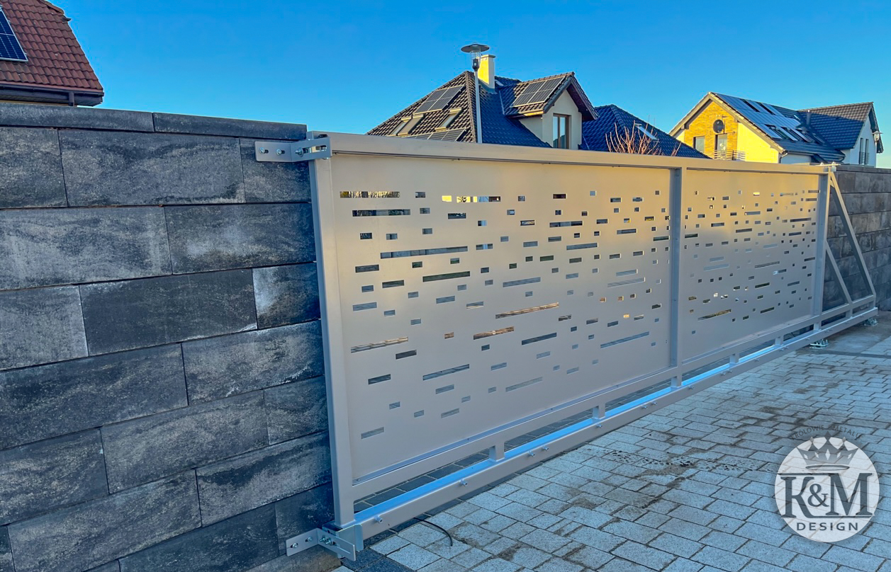 BRAMA PRZESUWNA Z WYCIĘTYM LASEROWO WZOREM. Malowana proszkowo w wybranym kolorze RAL